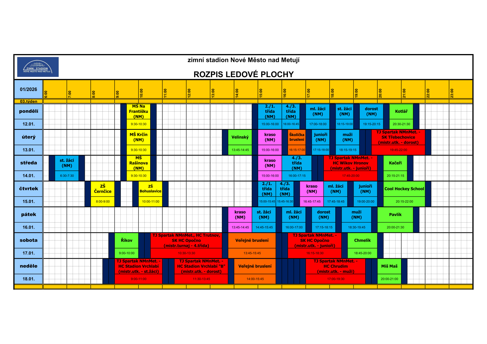 VYUŽITÍ LEDOVÉ PLOCHY V TÝDNU 12.01. - 18.01. 2026